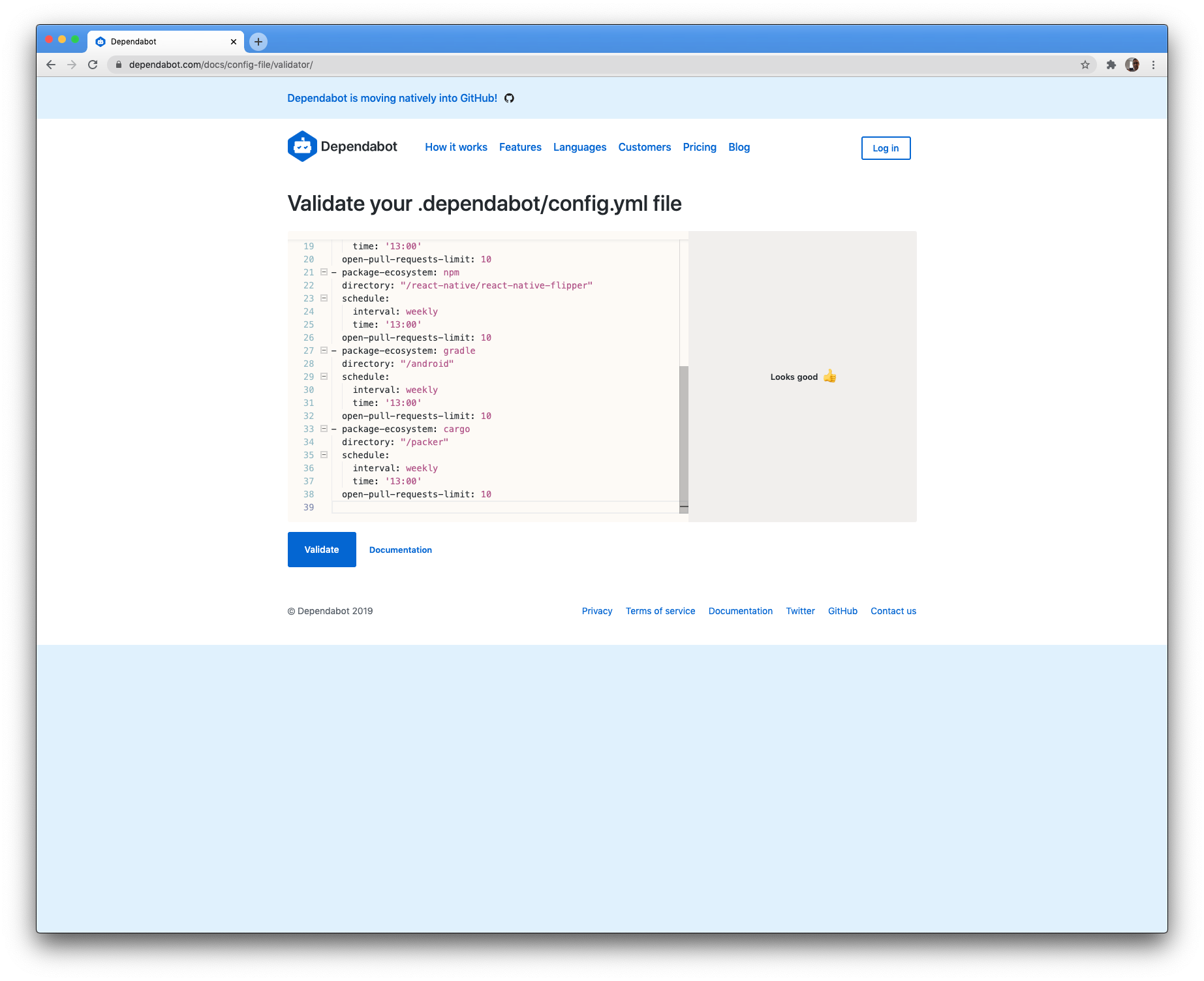 Config description here: https://help.github.com/en/github/administering-a-repository/configuration-options-for-dependency-updates#versioning-strategy
