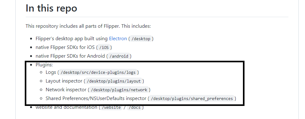 **All the 4 plugins paths are unreachable/changed in [in-this-repo](https://github.com/facebook/flipper#in-this-repo) section in README file. I have updated them with the correct paths.**