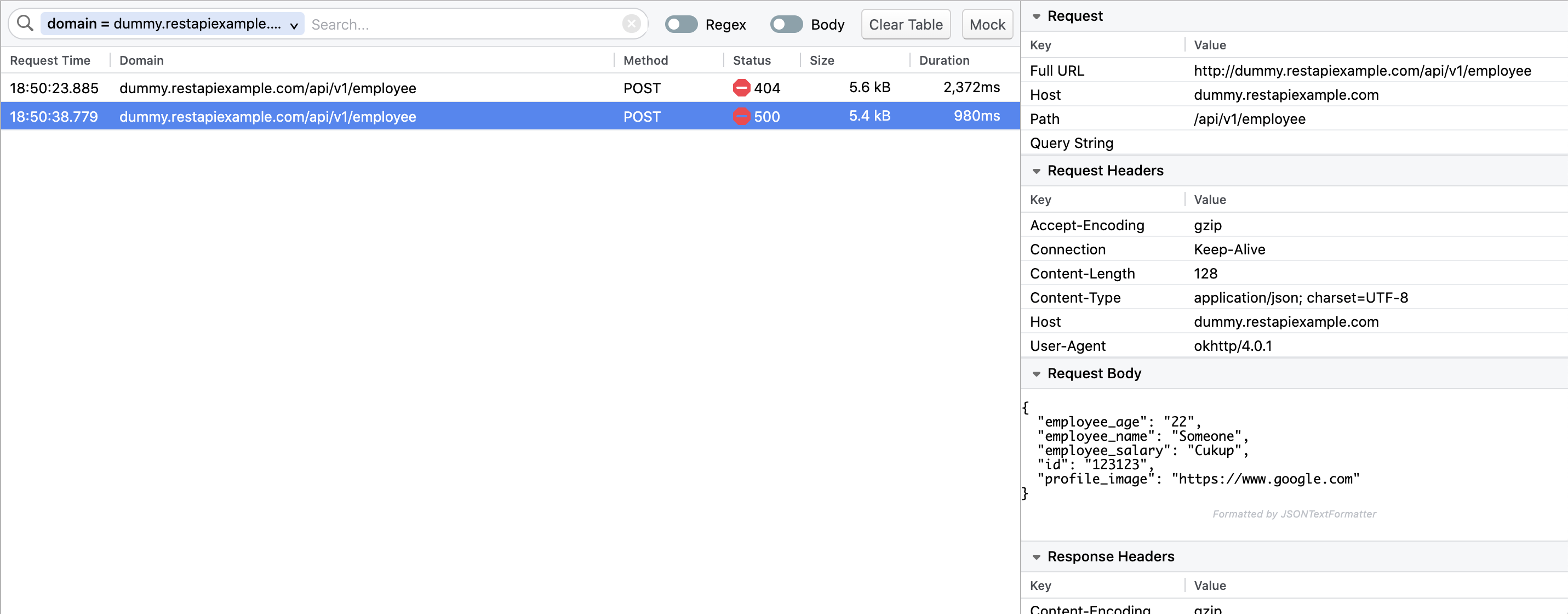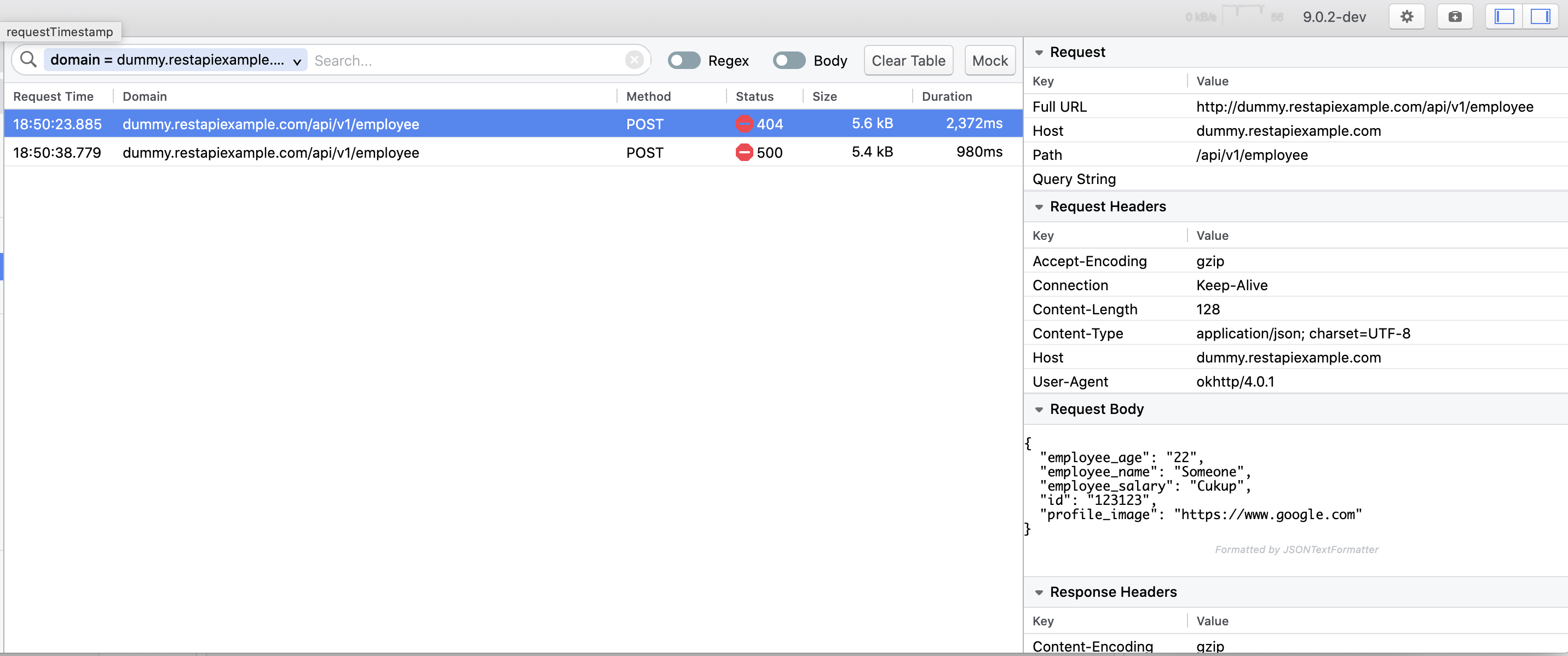 5. Verify that the request is mocked in the Network plugin